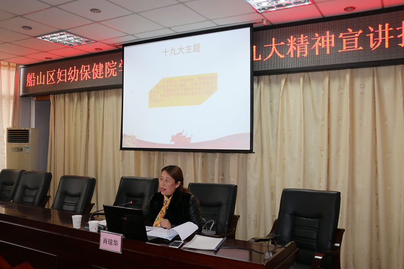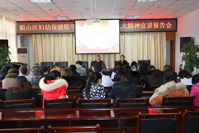 2017年12月26日下午五点,区卫计局党组副书记肖琼华来我院开展学习贯彻党的十九大精神专题党课宣讲。全院正式党员、预备党员参会,会上由肖书记组织大家对十九大主题、四个层面、十个方面历史性成就、两个重大判断、八个明确和十四条坚持的基本方略等方面进行了学习,最后由党总支副书记王德明对全院共产党员进行了要求和部署,要求全院党员要认真学习、做笔记,会后领会熟悉十九大报告相关内容,认真贯彻十九大相关方针及思想,推动医院医疗卫生事业不断深入发展,更好地服务于民。