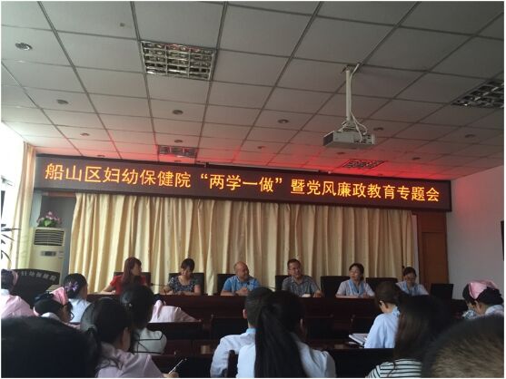 2016年5月31日下午五点,全院党员领导干部、正式党员、行政后勤人员在医院七楼会议室召开“学党章党规、学系列讲话、做合格党员”暨党风廉政专题会。会上首先由党支部副书记王德明组织大家学习相关党员廉洁规章制度、宣读了我院此次活动的实施方案及领导小组,最后由支部书记、院长蒋晓海对此次活动做了相关要求和部署,要求全院党员要积极响应医院号召,认真学习及撰写心得体会。
