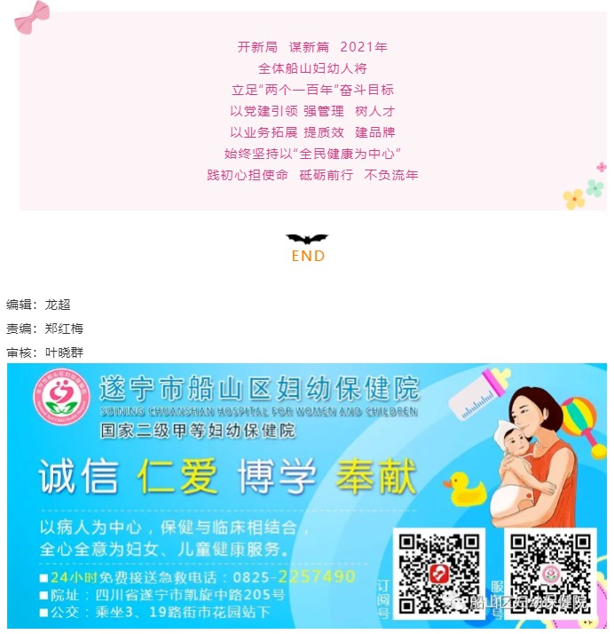免费接送/急救电话:0825-2257490 / 2233105 电话预约挂号:0825-5817080 投诉电话:0825-2226870 域名:遂宁市船山区妇幼保健院.公益