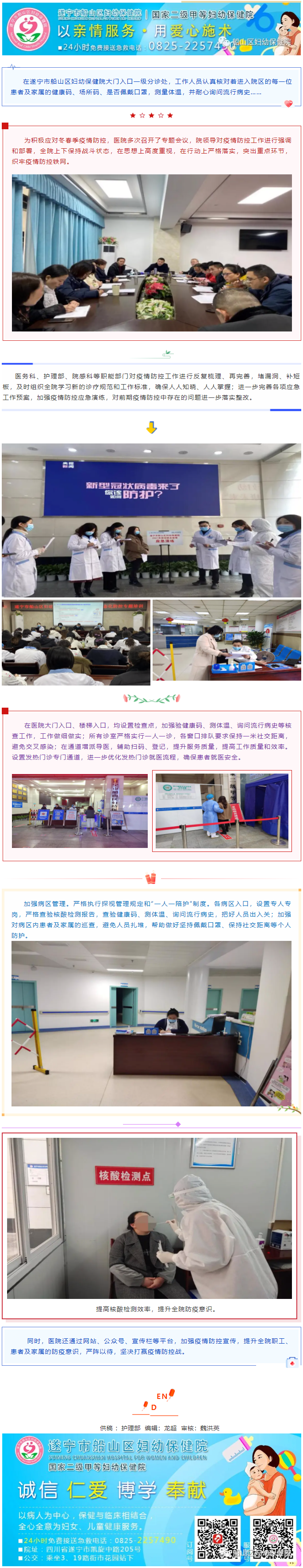免费接送/急救电话:0825-2257490 / 2233105 电话预约挂号:0825-5817080 投诉电话:0825-2226870 域名:遂宁市船山区妇幼保健院.公益