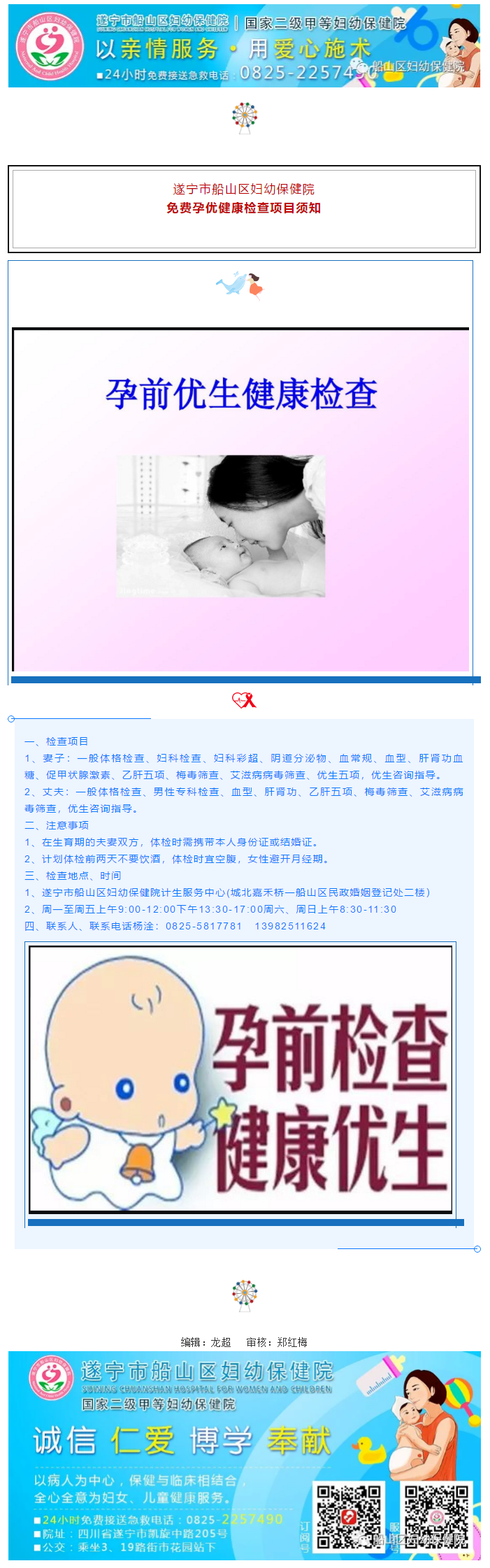 免费接送/急救电话:0825-2257490 / 2233105 电话预约挂号:0825-5817080 投诉电话:0825-2226870 域名:遂宁市船山区妇幼保健院.公益