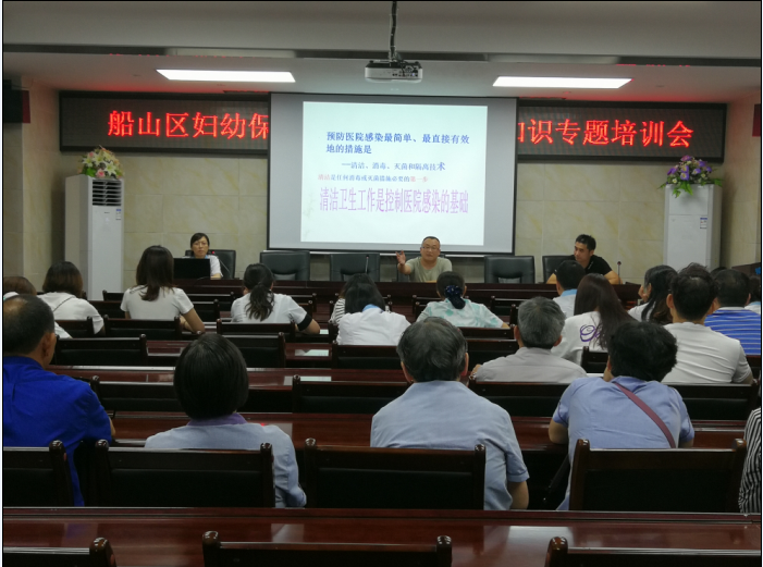790124651@qq.com为进一步提高医院工勤人员院感防控能力及自我防护意识,规范工勤人员环境物表清洁消毒操作流程,为病员提供安全、整洁舒适的就医环境,2019年6月19日下午五时,院感科会同后勤科在行政楼会议室组织召开了工勤人员院感知识专题培训会。参会人员有分管领导、全院工勤人员、临床科室院感小组成员。