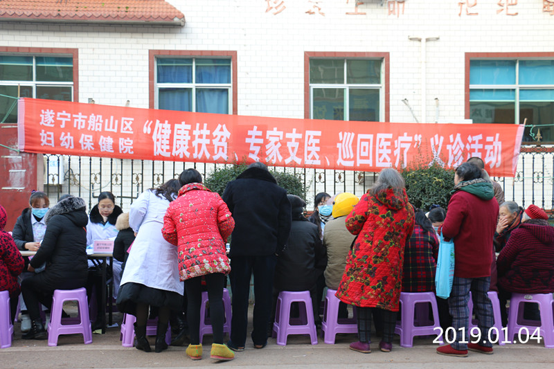 2019年1月4日,新年开始,船山区妇幼保健院精心组织医护人员一行到船山区河沙镇,开展以“健康扶贫、专家支医、巡回医疗”为主题的义诊活动。