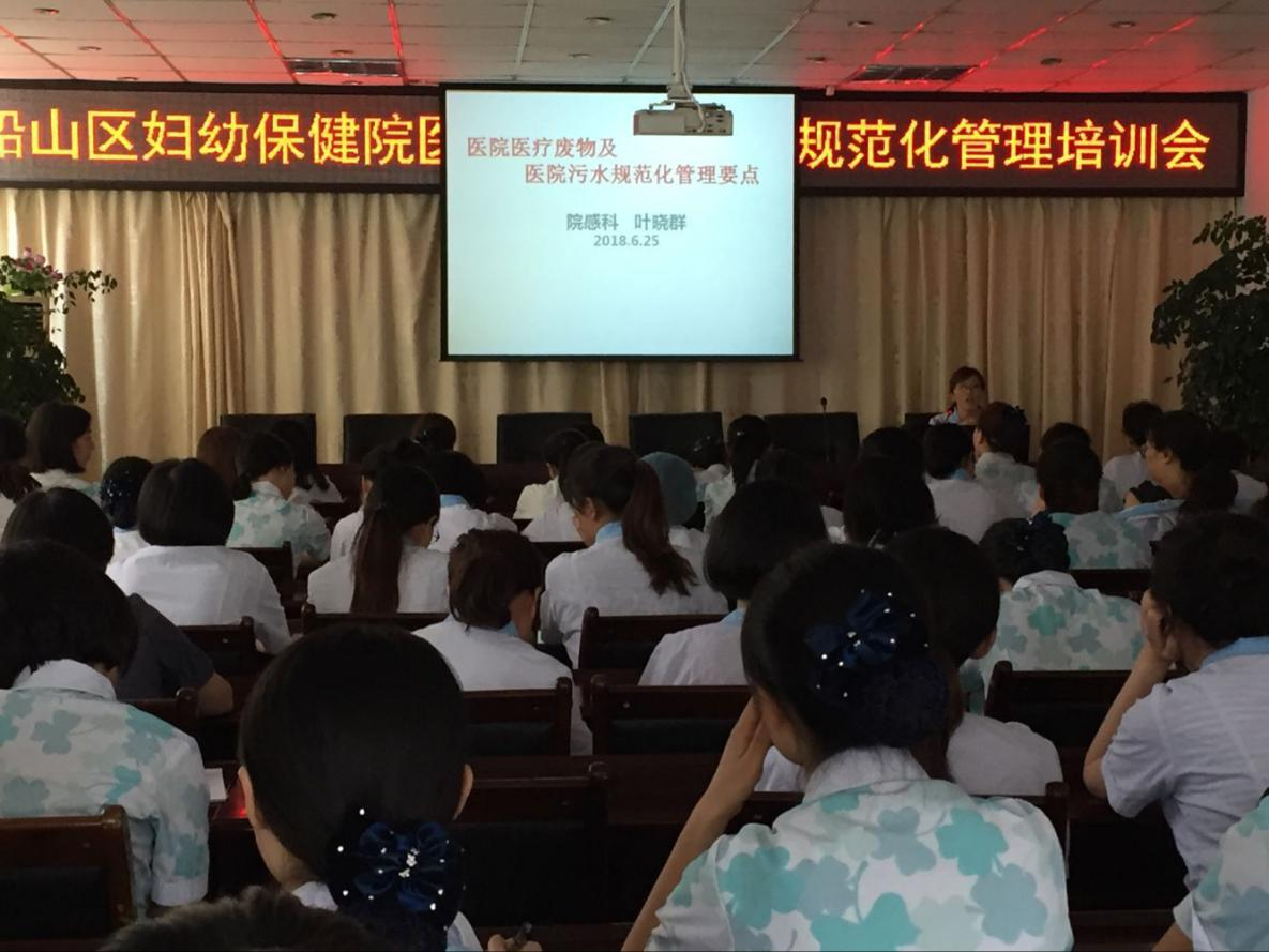 790124651@qq.com为贯彻落实《遂宁市船山区卫生和计划生育局落实中央第五环境保护督察组督察反馈意见整改实施方案》(遂船卫计发〔2018〕190号),做好迎接省环保督察“回头看”工作,2018年6月25日17:30在七楼会议室,院感科组织召开了全院医疗废物及污水规范化管理培训会,全院医务人员90多人参加了培训。
