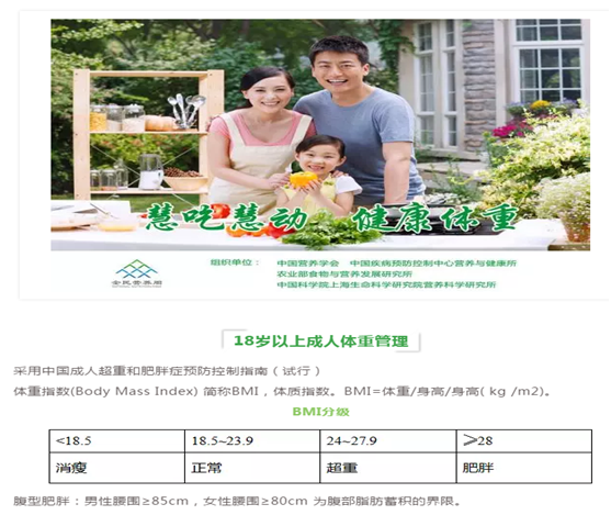 强调了从怀孕开始,婴儿、儿童、成人、老人都应把以生活方式管理、维持健康体重作为终生坚持的目标。无论是个体还是群体,消瘦与肥胖对人体健康均产生不良影响,通过倡导人们平衡膳食,适量运动是实现健康体重管理的首要方法。