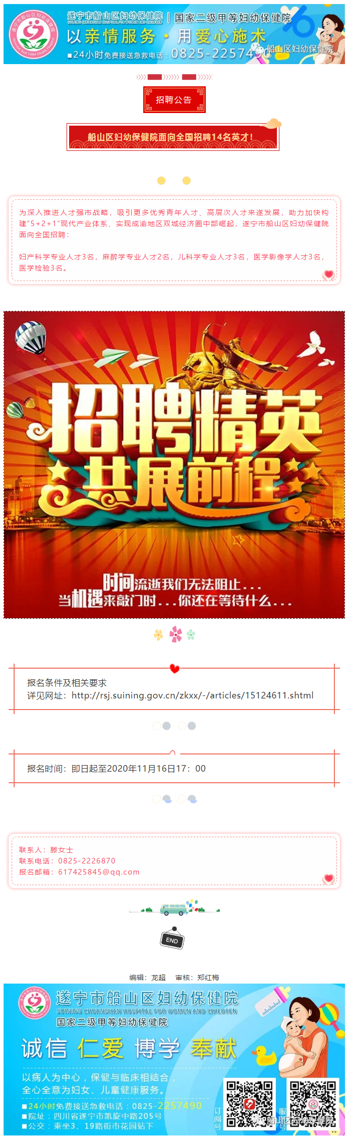 遂宁市船山区妇幼保健院 关于公开招聘17名专业技术人员的公告