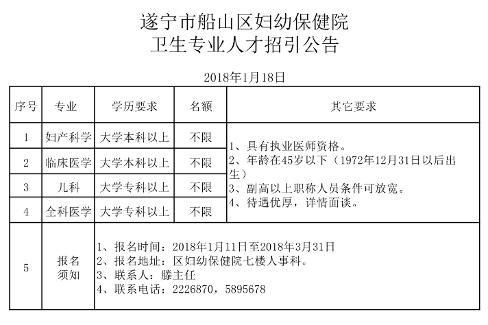 遂宁市船山区妇幼保健院2020年卫生专业人才招引公告